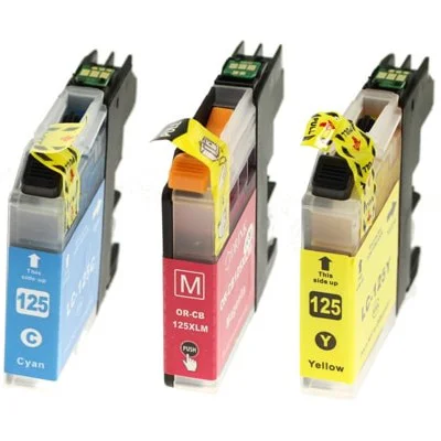 Compatible Ink Cartridges LC-125 XL CMY for Brother (LC125XLRBWBP) (3-pack) are designed to inject vibrant life into your printing tasks. These compatible cartridges bring extraordinary color to your documents and photos, ensuring each page bursts with radiant yellow, magenta, and cyan hues. Manufactured by DrTusz, these inks flawlessly combine high page yields with impressive compatibility, all at a remarkable value.