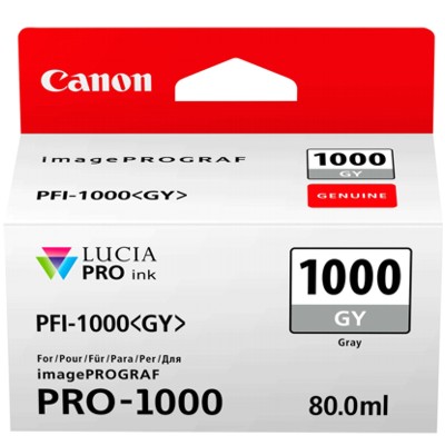 Original OEM Ink Cartridge Canon PFI-1000GY (0552C001) (Gray) Category Inkjet Cartridges Compatible with Canon Class Ink Cartridge Catalog Number 0552C001 Type Original OEM Availability Available in 24h Color Gray Quantity 12 Manufactured by Canon