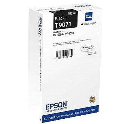 Original OEM Ink Cartridge Epson T9071 (C13T907140) (Black) Category Inkjet Cartridges Catalog Number C13T907140 Class Ink Cartridge Availability Ask for availability Type Original OEM Capacity 202 ml Color Black Yield 10000 pages Manufactured by Epson