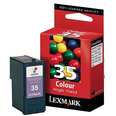 | Language Information Newsletter Contact | | Product Info Original OEM Ink Cartridge Lexmark 35 (18C0035E) (Color) | | | Category | Inkjet Cartridges | Compatible with | Lexmark | | Class | Ink Cartridge | Catalog Number | 18C0035E | | Type | Original OEM | Availability | Ask for availability | | Color | Color | Yield | 520 pages | | Manufactured by | Lexmark | Cost per page | 39,42 gr/page | always free delivery Kurier GLS