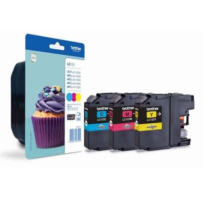 Original OEM Ink Cartridges Brother LC-123 CMY (LC123RBWBP) (3-pack) - unleash your creativity with vibrant colors and impeccable quality! If you're looking to revitalize your documents with spectacular hues, our original OEM ink cartridges are just what you need. Specially crafted by Brother, this 3-pack includes yellow, magenta, and cyan inks, allowing you to bring life to every page with breathtaking clarity and color fidelity.