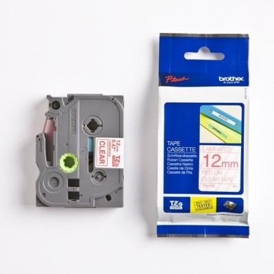 Polecam. Specification Original OEM Ribbon Brother TZe-132 (TZE132) (Transparent) (12 mm, 8 m, Transparent, Red)